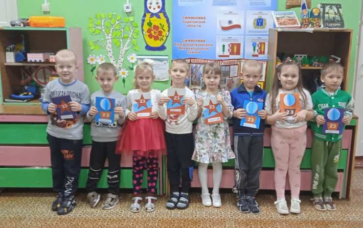 Работая над открыткой, каждый ребенок проникся чувством патриотизма и гордости за героизм и смелость тех, кто надежно охраняет нашу страну от врагов! Для участников, принимающих участие в спецоперации, открытка - добрая весточка из дома станет отличным подарком к празднику и огромной поддержкой морального духа. Дети почувствовали себя защитниками Родины, ведь они своими силами и стараниями морально поддерживают наших солдат, тем самым помогают победить врага. Несмотря на юный возраст, наши воспитанники понимают, как сейчас это важно!