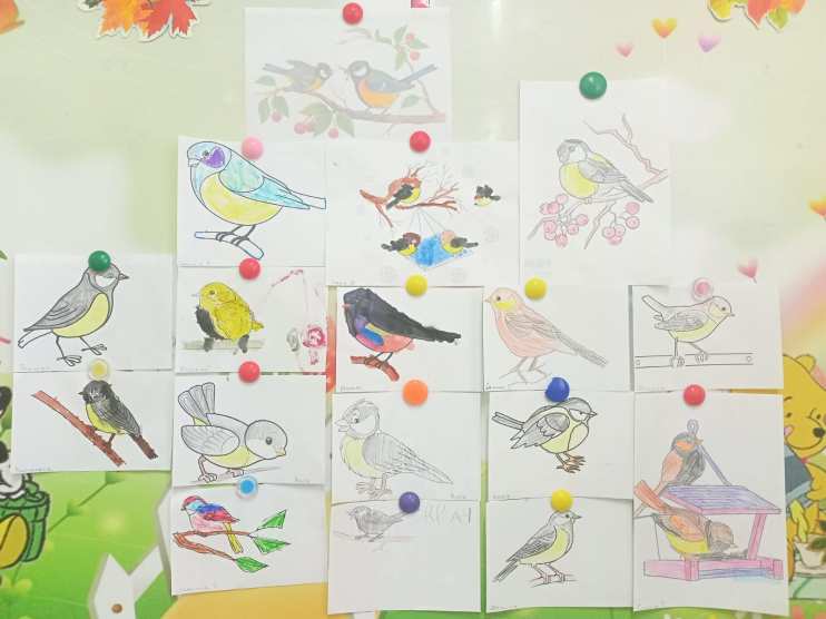 - проведение дидактических игр: «Узнай по описанию», «Что за птица», «Собери картинку», «Третий лишний», «Гнездовья птиц», «Птички на ветках», «Зимующие птицы», «Кто как кричит», «Найди по описанию», «Как кто устроен»;