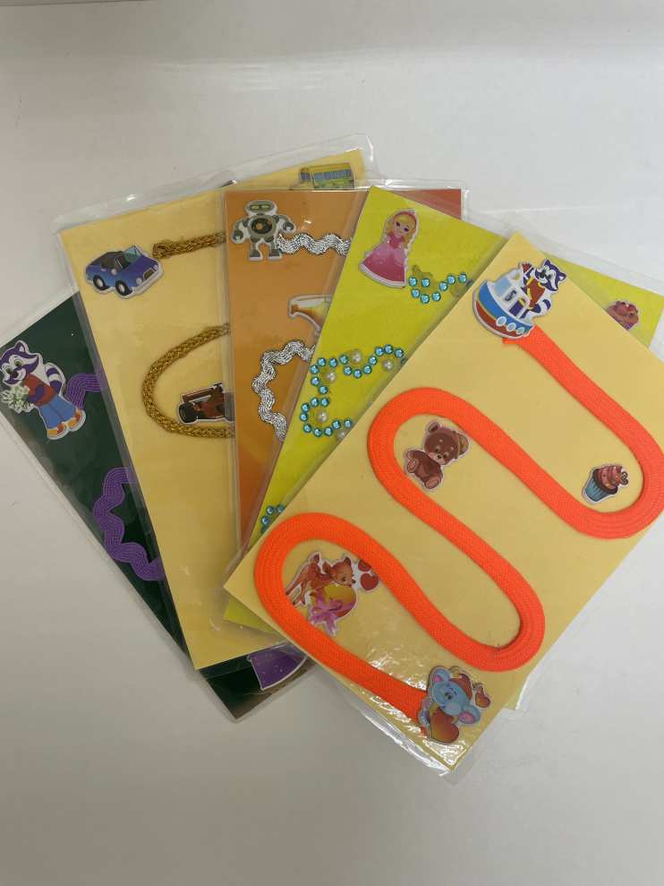 Сегодня я покажу вам карточки со звуковыми дорожками. Их может быть великое множество: можно придумывать разные сюжеты, оформления, использовать необычный материал. Для своих карточек я использовала заламинированные листы картона, на которые наклеивала шнуровки, стразы, наклейки, бусины…