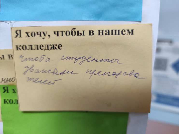 20 ноября 2023 года в КГА ПОУ ГАСКК МЦК началась Неделя психологии. Началась Неделя психологии с акции «Изречения мудрых», которые волонтеры-психологи разместили на 1 и 2 этажах колледжа. Педагог-психолог Подпорина Анна Анатольевна подготовила выставку позитивных мотиваторов, которые заряжают эмоциональным зарядом студентов колледжа. На большой перемене в холле проводилась психологическая акция «Я хочу, чтобы в нашем колледже…». Студенты и преподаватели писали свои позитивные пожелания для нашего колледжа. Спасибо большое волонтерам!