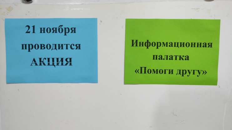 21 ноября в КГА ПОУ ГАСКК МЦК волонтеры-психологи под руководством педагога-психолога Подпориной А.А. провели психологическую акцию «Информационная палатка «Помоги другу»». В акции принимали участие две категории специалистов: «Эксперты» и «Консультанты». Студентам предлагались вопросы, на которые необходимо было дать ответ: