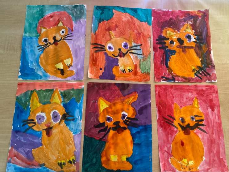 Дети рассказывали о своих любимых кошках, а на прогулке с удовольствием играли в игру «Кот и мышка». В завершение тематического дня дети нарисовали всеми любимых домашних питомцев — котят.