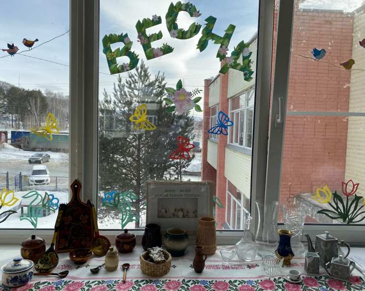 Среди экспонатов мини-музея имеется много разных видов посуды: деревянная, глиняная, стеклянная, посуда из хрусталя, фарфора.