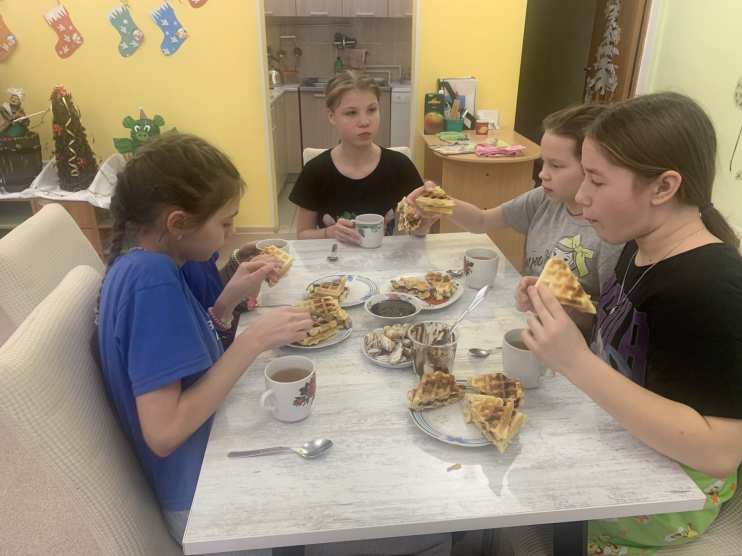 Сегодня 03.01.24 г. на улице очень холодно, и мы с ребятами решили устроить чаепитие с венскими вафлями. Всегда вкуснее, когда приготовишь своими руками. Девочки сами выбрали понравившийся рецепт, стали замешивать тесто, раскладывать его в электровафельницу и готовить начинку.