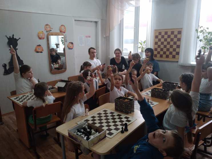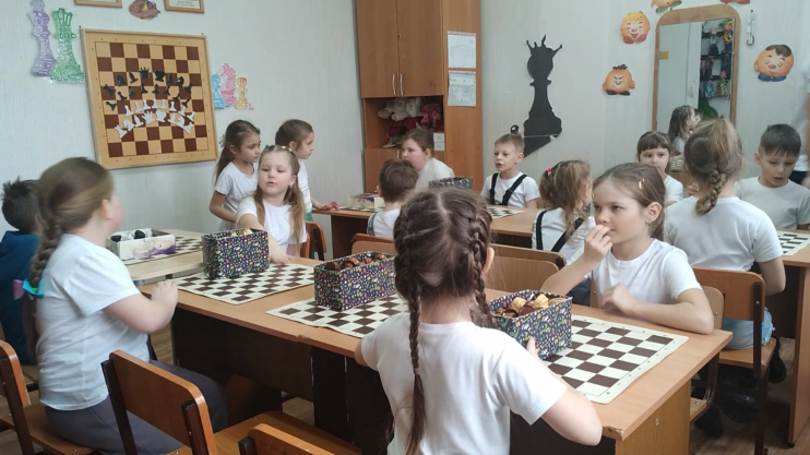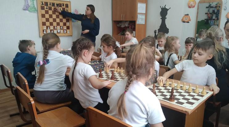 Особое внимание дети уделили кабинету шахмат. Здесь они смогли познакомиться с этой умной и стратегической игрой. Педагог Конева Екатерина Николаевна провела мастер-класс по шахматам под названием «Играем в шахматы». В ходе мастер-класса дети повторили правила игры и смогли сыграть мини-соревнование друг с другом. Они отвечали на вопросы и активно участвовали в обсуждении.