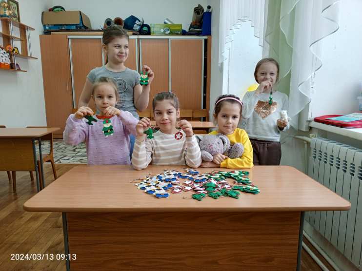 Обучающиеся студии "Филиппок" (руководитель Дроздова Т.И.), мастерской "Кудесники" (руководитель Шишкина Т.Е.), мастерской "Золотые ручки" (руководитель Прокудина Е.В.) изготовили сувениры для бойцов СВО.