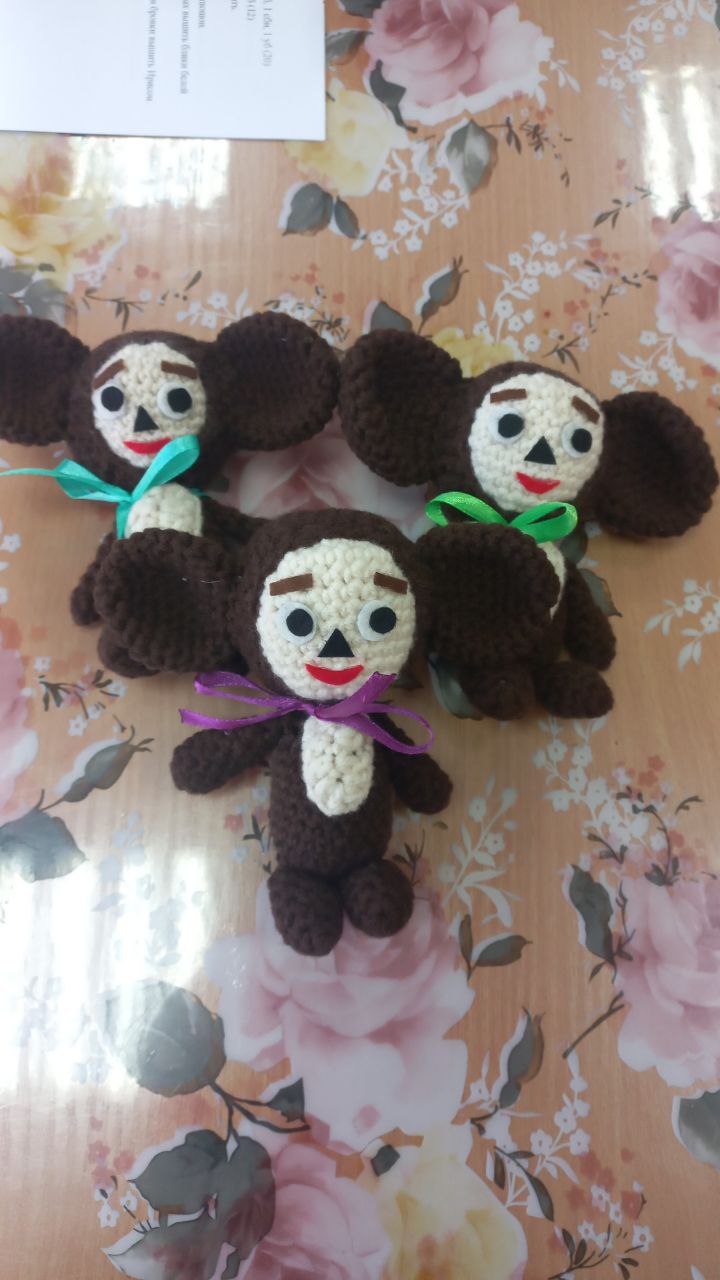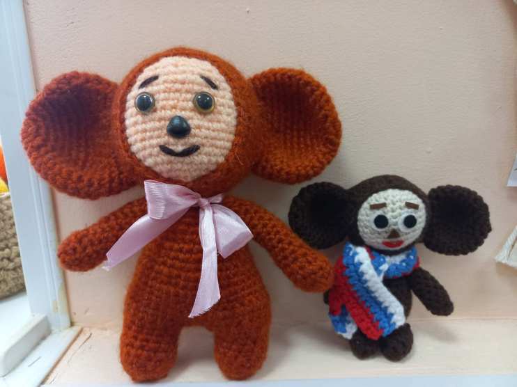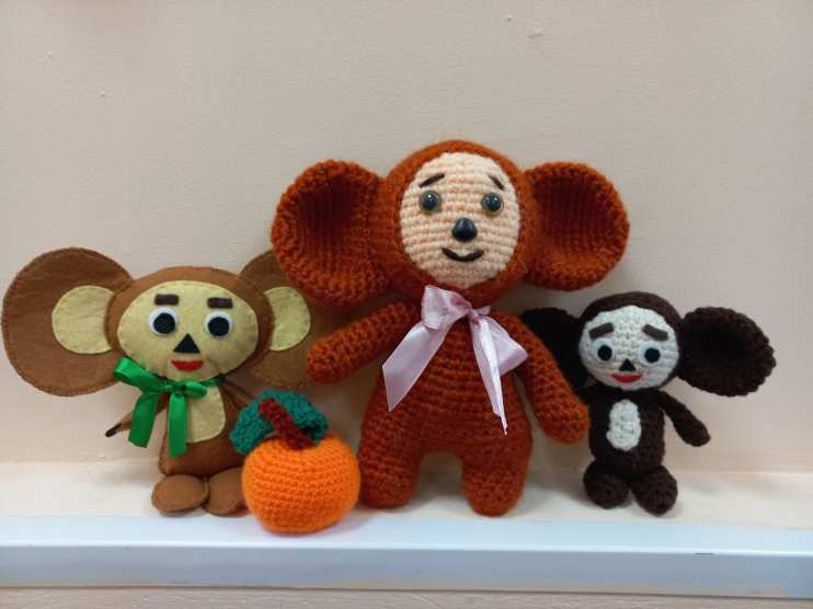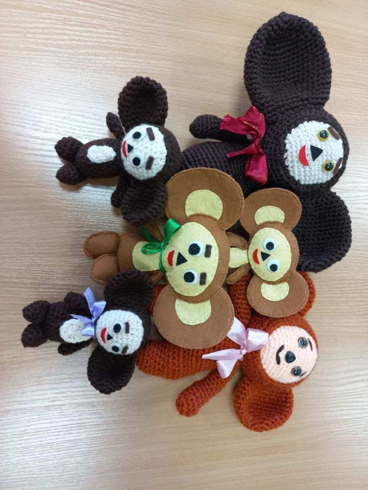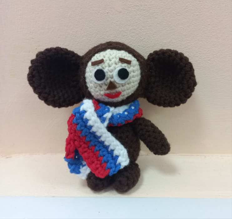 Символ защиты наших солдат - Чебурашка. Мы шили Чебурашек из фетра и меха, вязали из пряжи, украшали ленточками и вязали шарфики в цвет российского флага.