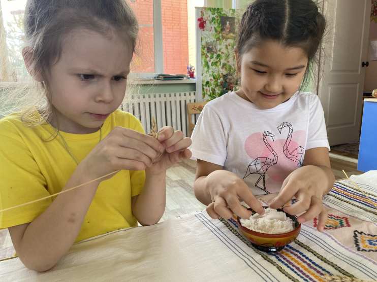 Дети узнали, как наши предки выращивали хлеб, как в наши дни выращивают хлеб, какие машины были построены в помощь хлеборобам. А также познакомились с такими профессиями, как хлебороб, комбайнер, пекарь, кондитер; с названиями машин, которые помогают человеку в процессе выращивания хлеба. С ребятами читали сказки, рассказы, заучивали пословицы и поговорки, отгадывали загадки по теме. На занятиях по художественной деятельности с детьми лепили хлебобулочные изделия из соленого теста, рисовали колоски пшеницы.