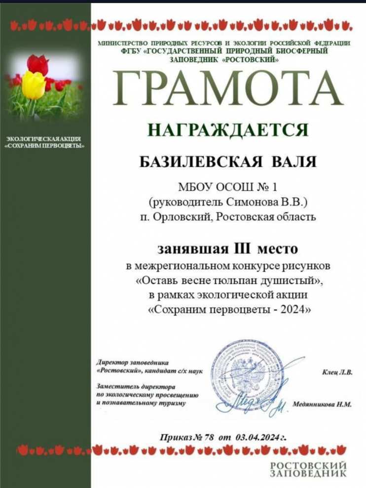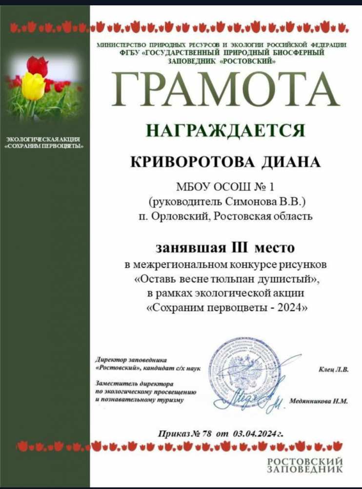 В рамках экологической акции "Сохрани первоцветы" мы с ребятами участвовали в межрегиональном конкурсе рисунков "Оставь весне тюльпан душистый".