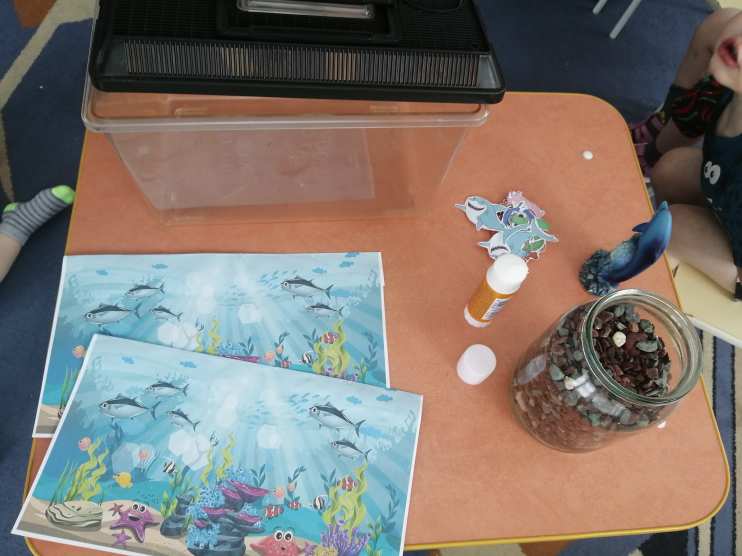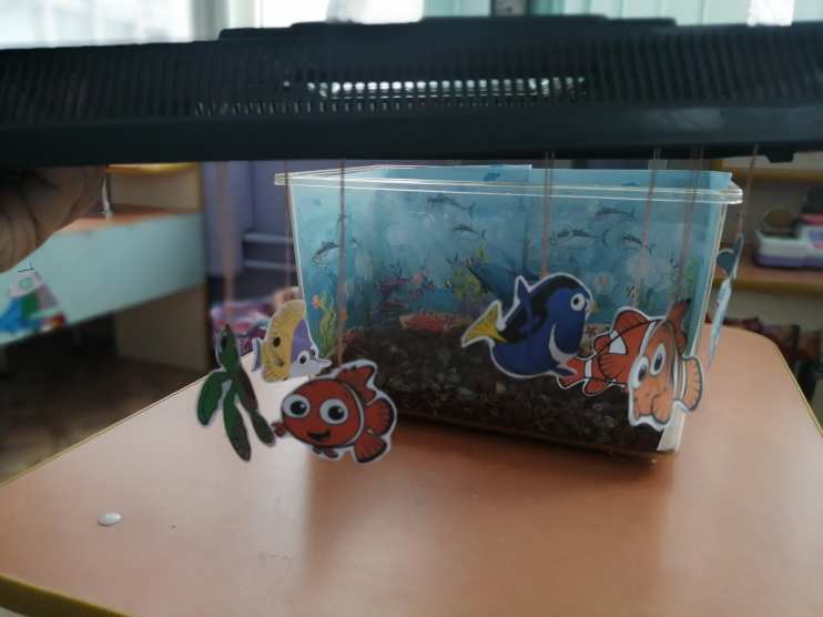 Цель: Сформировать у детей представления о разных видах аквариумных рыб и других обитателей, а также способах ухода за ними; дифференцировать представления детей о водоёме как среде обитания аквариумных рыб; развитие творческой познавательной активности дошкольников, воспитание у детей эмоционально-положительного отношения и интереса к процессу макетирования.