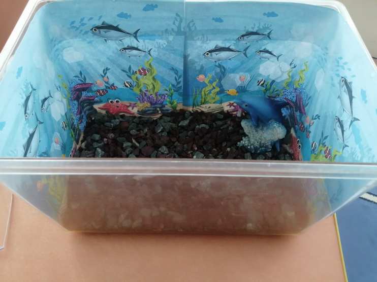 Маркеры пространства: рыбки, кораллы, ракушки, морские камешки.