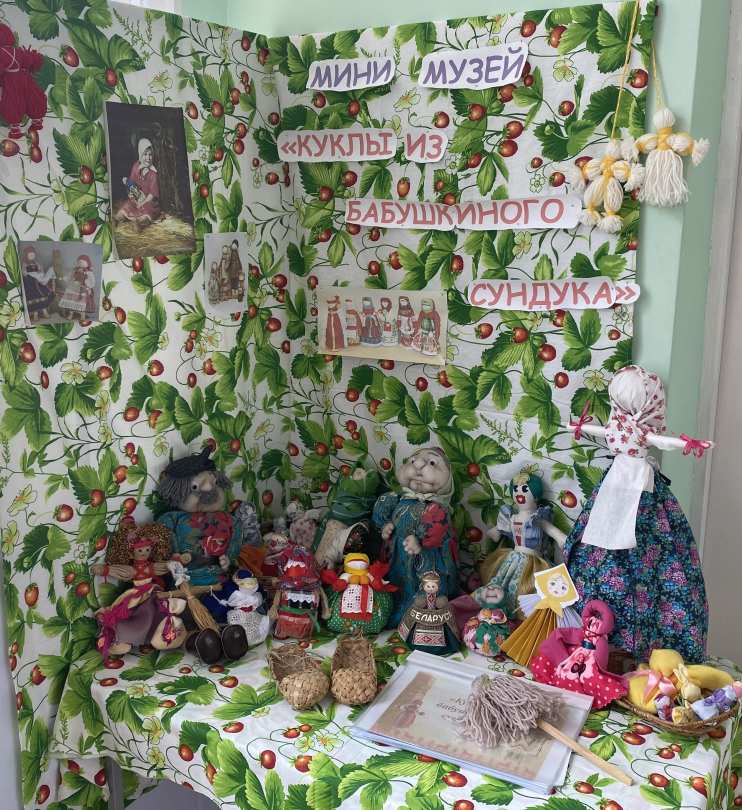 Приобщить детей к народной культуре мы решили через русскую народную куклу и создали в группе мини-музей «Куклы из бабушкиного сундука». В нашем музее собраны экспонаты, созданные руками воспитателей, изготовленные совместно с детьми, созданные семьями воспитанников. Экспонаты мини-музея находятся в свободном доступе у детей, их можно брать в руки, рассматривать и играть ими. В обычном музее ребенок лишь созерцатель, а здесь он соавтор, творец экспозиции. Причем не только он сам, но и его семья. Дошкольники чувствуют свою причастность к мини-музею, когда сами участвуют в его создании. Мини-музей – это результат общения, совместная работа воспитателей, детей и их семей.