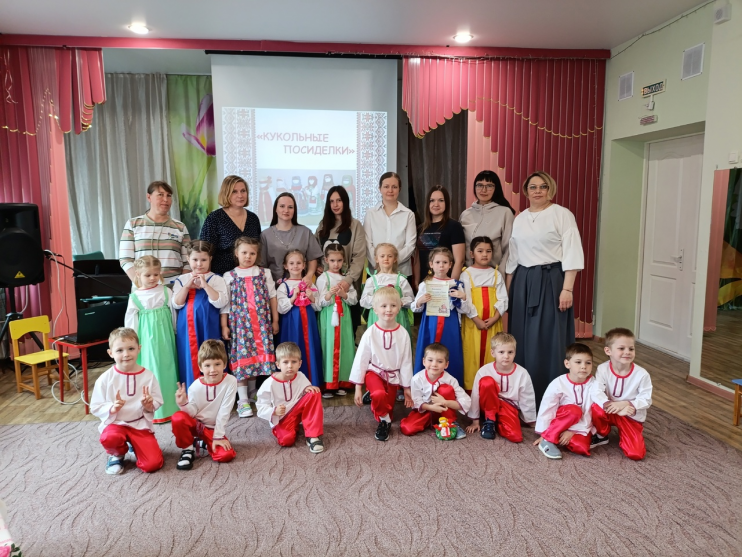 Так в апреле мы провели «Кукольные посиделки». Перед этим мероприятием была проведена большая работа. Дети вместе с воспитателями изготовили куклы-обережки «Пеленашка» и «Зайчик на пальчик». Вместе с родителями дети приняли участие в мастер-классе по изготовлению обереговой куклы из ниток. В группе был создан мини-музей «Куклы из бабушкиного сундука», где кукол изготавливали дома кто-то с бабушками, кто-то с мамами. А на посиделках дети вместе с родителями рассказывали, как они изготавливали кукол и для чего их использовали. Также на посиделках дети играли в игры, отгадывали загадки. Были приглашены гости из других групп, которым очень понравилось. Они очень внимательно слушали, а потом задавали вопросы, на которые дети-участники с радостью отвечали.