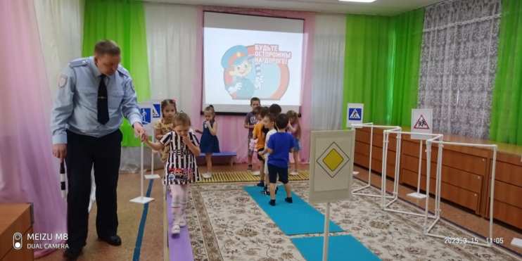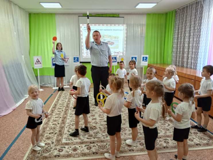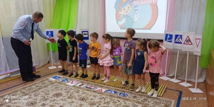 15 марта 2023 года в нашем Ермаковском детском саду №3 прошло мероприятие в игровой форме «Я – пешеход». В гости приходил заместитель начальника ГБДД Лебедев Валерий Викторович. Он провел с детьми беседу на тему «Правила безопасности на дорогах», а также в играх с детьми был в роли регулировщика дорожного движения.