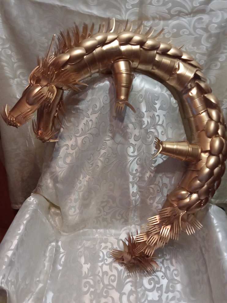 В интернете нашла интересные фотографии: дракон из одноразовой посуды. Я не смогла найти подробное описание последовательности изготовления дракона. Делали сами, используя фотографии, которые смогли найти в интернете.