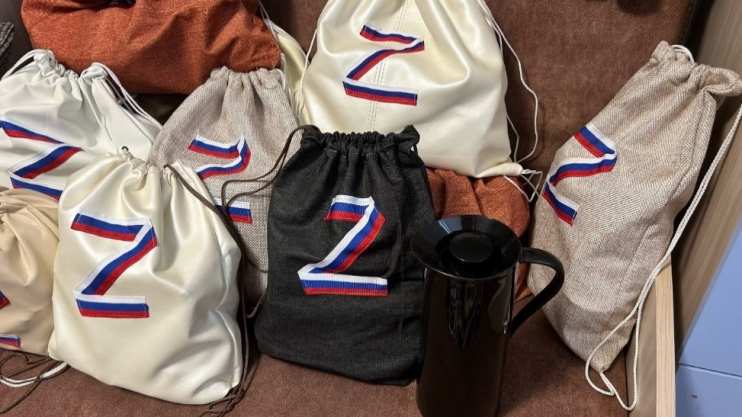 Педагоги нашей школы, учащиеся и их родители очень часто отправляют индивидуальные подарки военнослужащим. Для удобства формирования подарков, обучающиеся на уроках швейного дела изготавливают небольшие вещмешки. Шьются они по типу мешков для сменной обуви. Ткань подойдет абсолютно любая, но лучше плотная. Мы украсили наши мешочки аппликацией триколора в виде буквы Z.