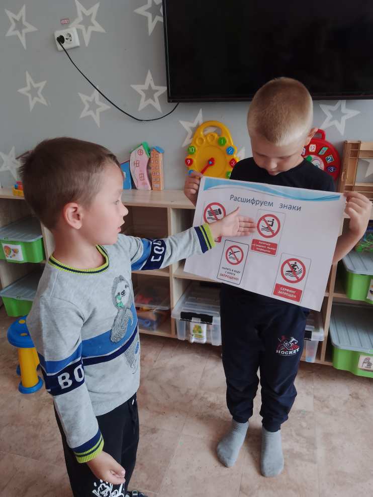 В группе «Звездочки» прошло познавательное занятие о безопасности на воде. Ребята вспомнили правила поведения на воде в летнее время, просмотрели видеоролик, в игровой форме закрепили имеющиеся знания по теме.