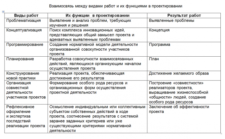 Социально-педагогическое проектирование является интегральным процессом и включает в свой состав такие виды работ, как проблематизация, концептуализация, программирование, планирование, конструирование новой практики и организация совместной деятельности участников проекта.