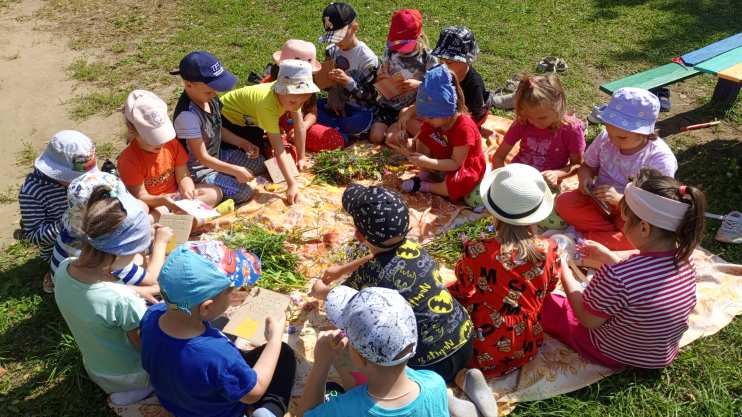 Началось все с похода на цветочную лужайку. Здесь дети собрали красивые цветы для своих цветочных композиций. Каждый выбирал цветочки по своему настроению, цвету, запаху или просто по душе.