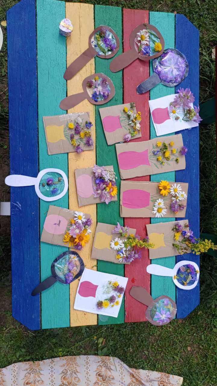 А после началось настоящее искусство. Каждый ребенок создавал свою цветочную композицию. У кого-то это была ваза с цветами, а у кого-то лупа с цветами внутри. Ребята старались создать настоящую красоту, сочетали цветы, добавляли веточки и листочки.