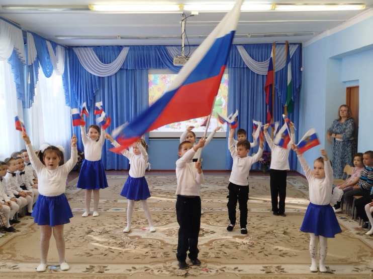 Прозвучало много слов благодарностей в адрес сотрудников детского сада. Дети читали трогательные стихи, исполнили тематическую песню и танцевали патриотический танец с флагами под песню Олега Газманова "Вперед Россия!".