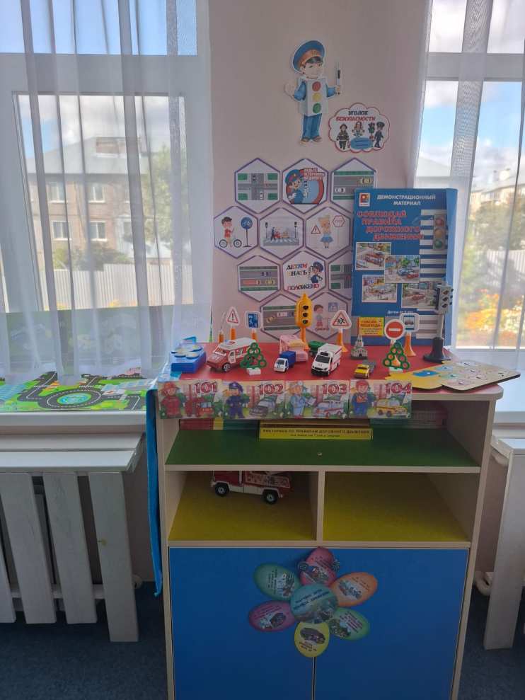 Проводились дидактические игры и упражнения: «Собери картинку», «Собери машину», «Сломанный светофор», «Что говорит светофор»; сюжетно-ролевые и подвижные игры: «Шофер автобуса», «Водители», «Веселый светофор», «В автобусе», «Поможем Зайке перевезти урожай» - все игры, направленные на изучение правил дорожного движения. В группах оформлены уголки «Дорожное движение». Свои знания дети закрепили в продуктивной деятельности - рисовании «Пешеходный переход и дорожные знаки».