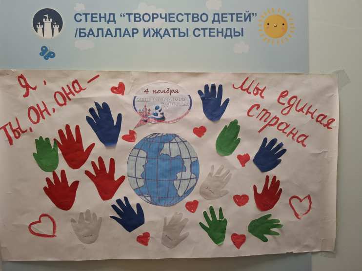 Если мы вместе друг с другом, рука об руку идем по жизни дружно, то и сила, могущество нашей страны будет приумножаться! Мы любим страну. С детьми были проведены беседы и занятие "Дружат дети всей земли" и создана совместная коллективная аппликация "я, ты, он, она - мы единая страна".