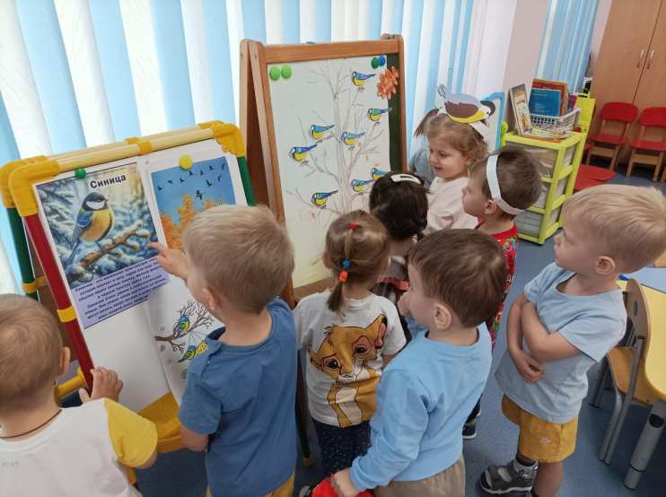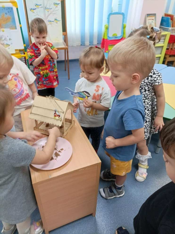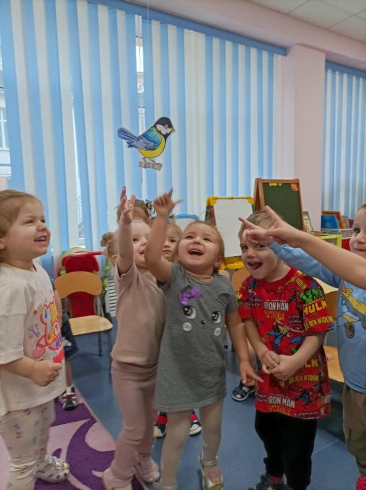 Была проведена дидактическая игра "Покормим птичку-синичку", русская народная игра "Летели две птички".
