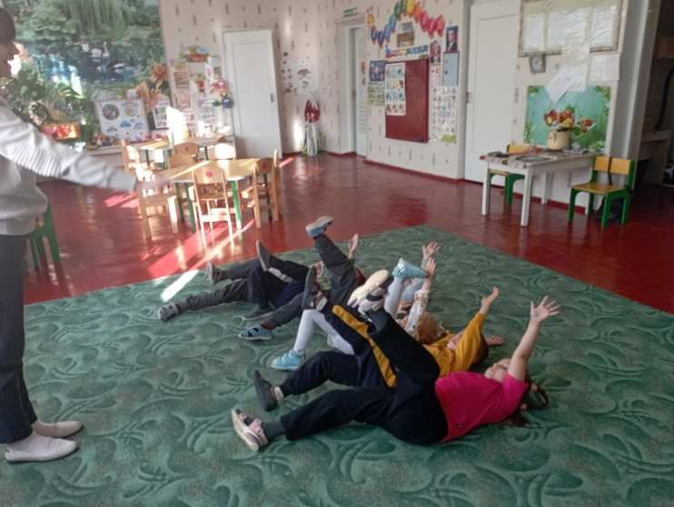 Дети ложатся спиной на коврик, руки вдоль туловища.