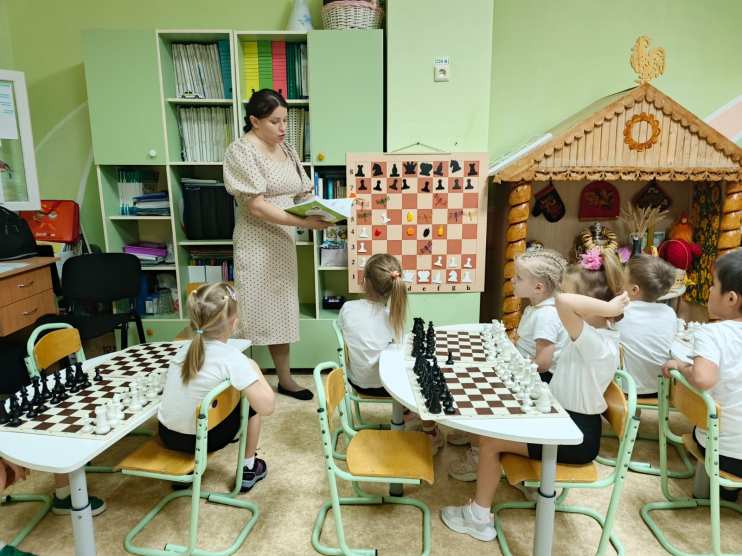 На занятии ребята с радостью вспомнили, как стоят фигуры в начальной позиции шахматной доски. Они даже разыграли партию, в которой участвовали ладьи и пешки. Это не только развивало их стратегическое мышление, но и помогало научиться взаимодействовать друг с другом, обсуждая свои ходы и решения.