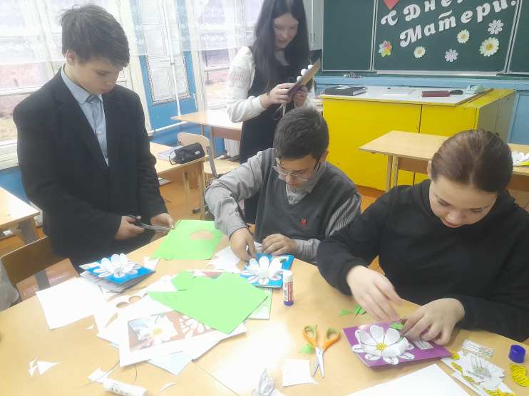 В канун праздника День матери обучающиеся 8 класса сделали своими руками поздравительные открытки.