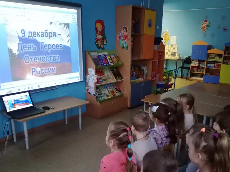 В преддверии этого дня в подготовительной группе детского сада я провела тематическое занятие, посвященное Дню Героев Отечества. Совместно с музыкальным руководителем был записан ролик-поздравление для Героев Отечества от детей подготовительной группы.