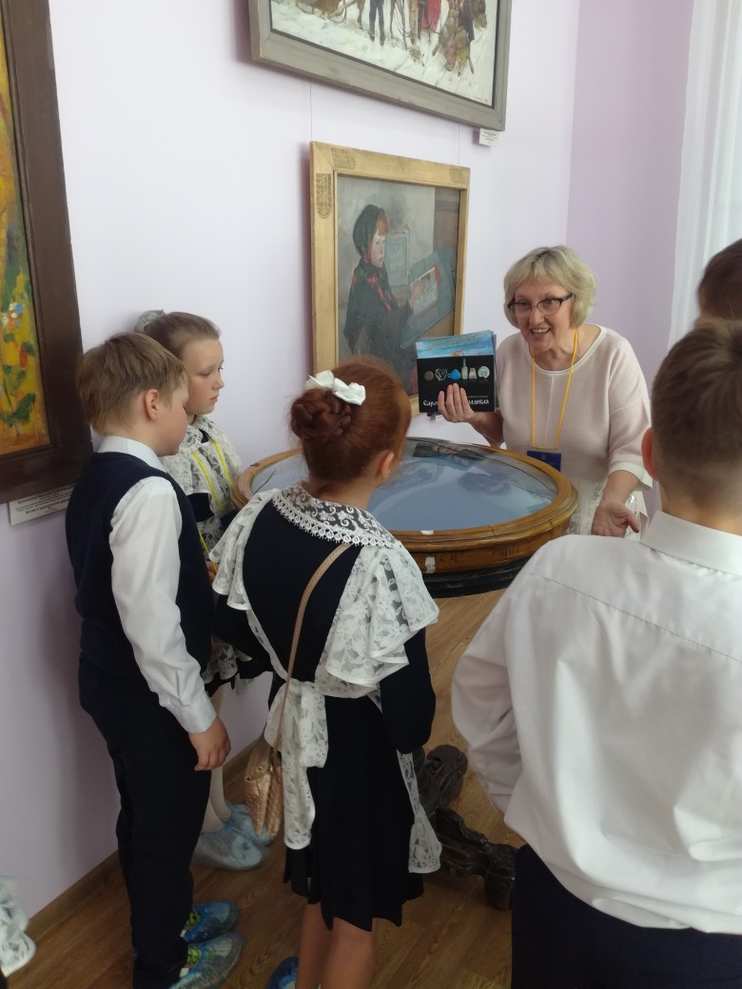 В течение часа Сабина Валерьевна провела экскурсию во всех залах, задавала вопросы, представила ребятам новую экспозицию, которая готовится ко Дню города.