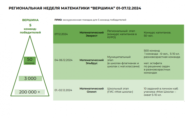 Основными целями и задачами РМН «Вершина» является популяризация математики, вовлечение школьников в командное решение математических задач.
