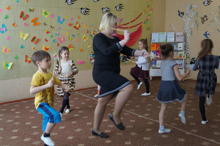 Музыкальный руководитель высшей категории - Сильвестрова Е.Ю. (бумажный оркестр, ореховый массаж, ритмичные палочки)