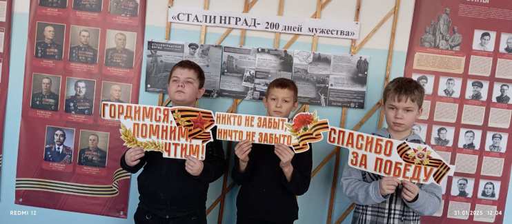 31 января 2025 года для учащихся 3 и 4 классов прошел час общения «Сталинград - 200 дней мужества». Ребята узнали о важных периодах Сталинградской битвы, о ее историческом значении, о великих подвигах защитников Сталинграда. Они узнали, что Сталинградская битва по продолжительности и ожесточенности боев, по количеству участвовавших людей и боевой техники превзошла все предшествующие ей сражения.