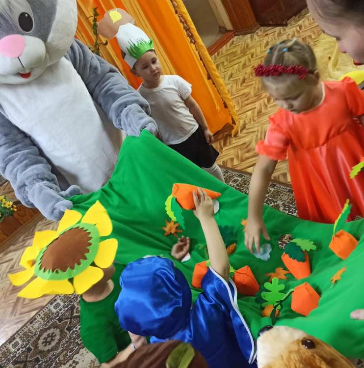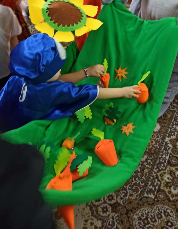 - Соревнование: Дети могут соревноваться, кто быстрее соберет урожай.