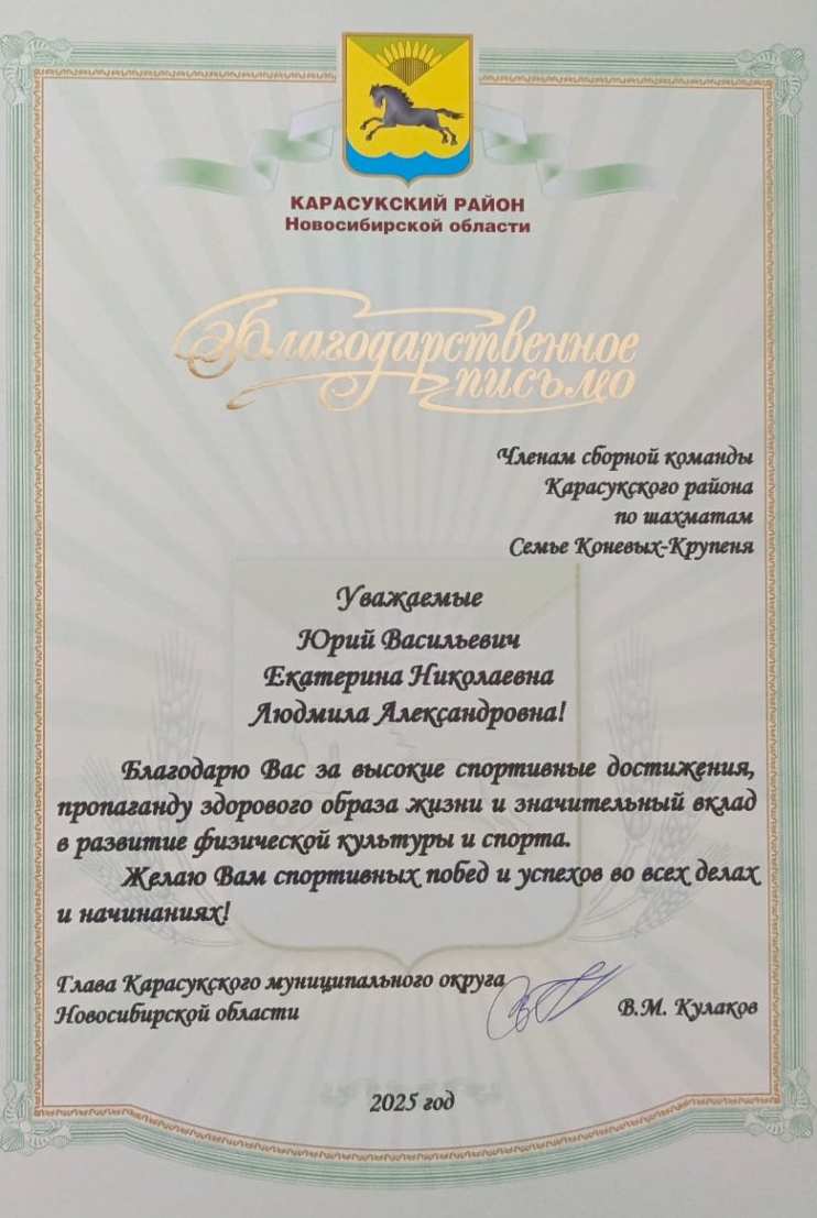 Огромное спасибо администрации Карасукского района за поддержку спорта и за признание моих достижений! Я и дальше буду стараться достойно представлять наш район и продолжать работать над собой, чтобы достигать новых высот как в образовании, так и в спорте.
