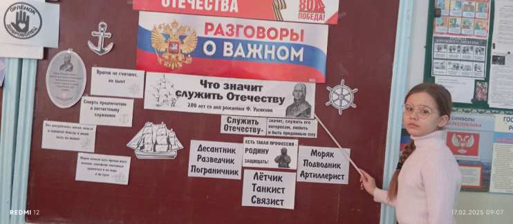 17 февраля 2025 года в 3 классе прошли «Разговоры о важном» на тему «Что значит служить Отечеству? 280 лет со дня рождения Ф.Ф. Ушакова». Занятие было направлено на развитие у обучающихся представлений о гражданском долге и служении Отечеству, уважения к историческим традициям и нравственным примерам, на формирование чувства патриотизма и ответственности за судьбу Родины.