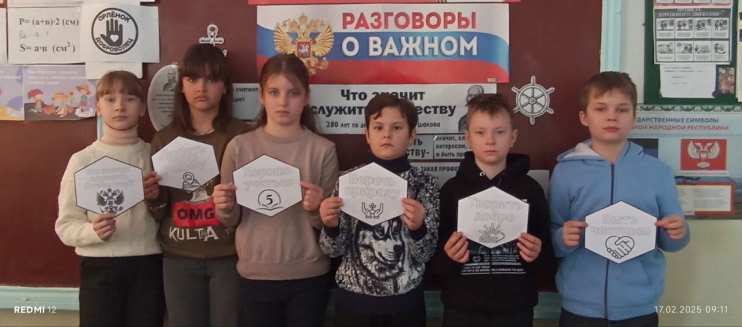 В ходе занятия учащиеся пришли к выводу, что служение Отечеству начинается с честного труда, ответственности и уважения к истории своей страны. Каждый человек может внести свой вклад в процветание Родины – учёбой, трудом, заботой о близких и сохранением памяти о героях прошлого.