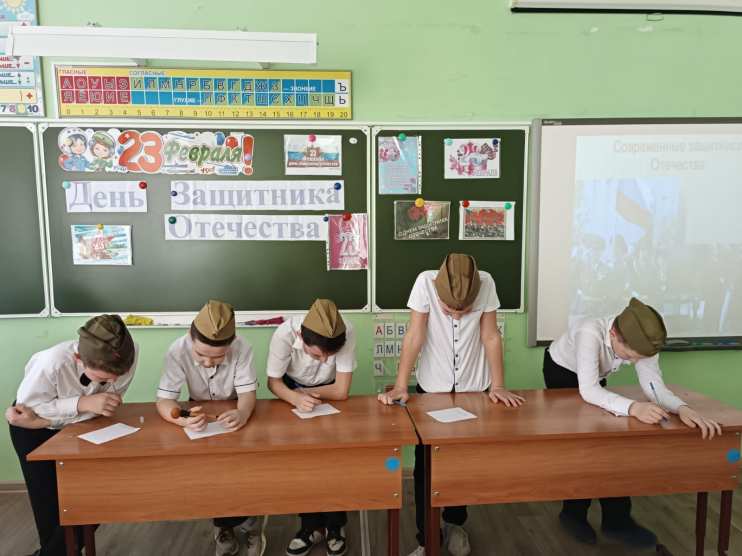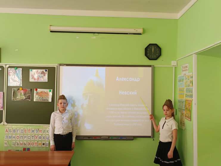 В рамках Дня защитника Отечества 22.02.25 в нашем классе было проведено внеклассное мероприятие, в ходе которого обучающиеся повторили информацию о защитниках Отечества разных времен: Дмитрии Донском, Александре Невском, Минине и Пожарском и других.