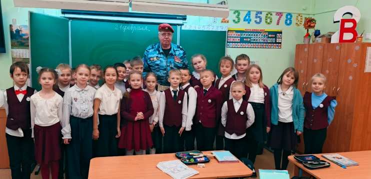 В конце беседы второклассники поздравили Михаила Александровича с наступающим праздником - 23 февраля и сделали фото на память.