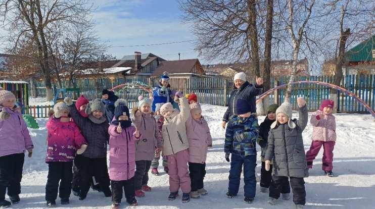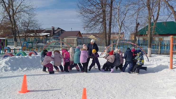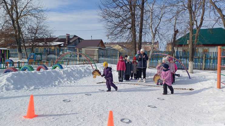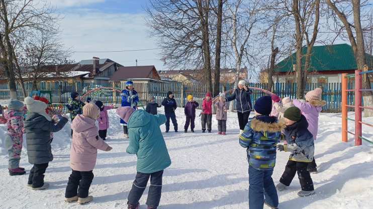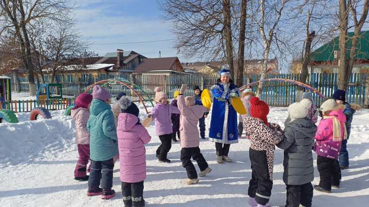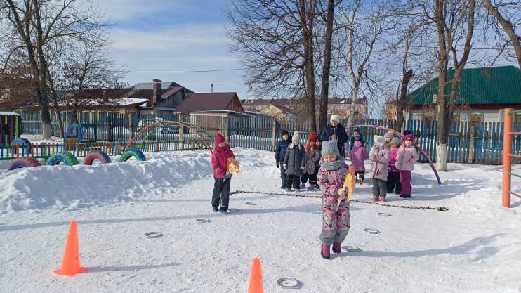 В подготовительной группе «Паровозик» на спортивной площадке прошло весёлое тематическое физкультурное занятие, посвящённое Масленице. В гости к ребятам пришла Зима, чтобы попрощаться и напоследок повеселиться вместе с детьми.