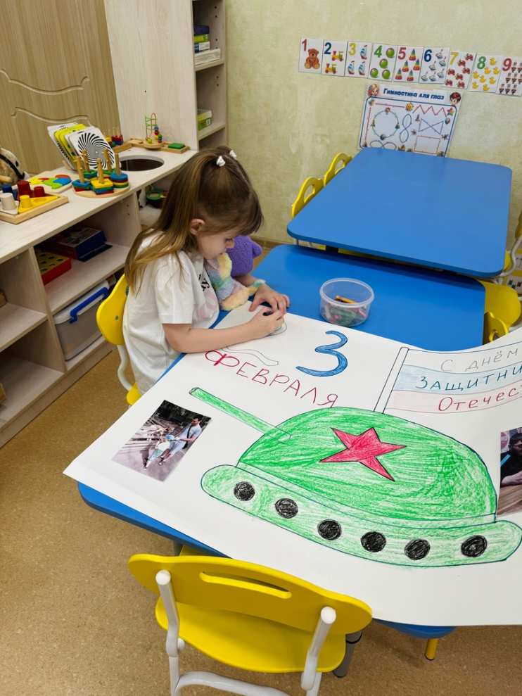 Продолжая тему патриотического воспитания, дети играли в сюжетно-ролевые игры «Мы — солдаты» и «Военный госпиталь», развивая навыки командной работы.