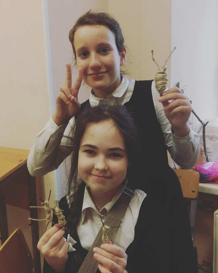 А для изготовления чертят мы решили взять ветки и связать их нитками, получилось очень гармонично с главными героями.