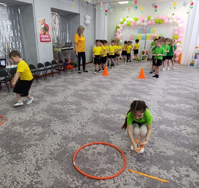На территории детского сада прошла спортивная эстафета, где дошкольники соревновались, участвовали в разных играх, направленных на внимание, точность выполнения команд. Каждый смог проявить свою силу, ловкость, быстроту, меткость и смекалку.