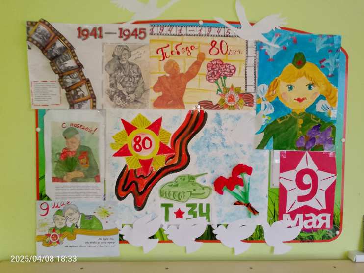 В рамках реализации мероприятий, посвященных 80-летию Победы в Великой Отечественной войне, воспитатель Матвеева Анастасия Константиновна изготовила праздничную стенгазету, на которой разместила стихи и поздравления с Днём Победы.