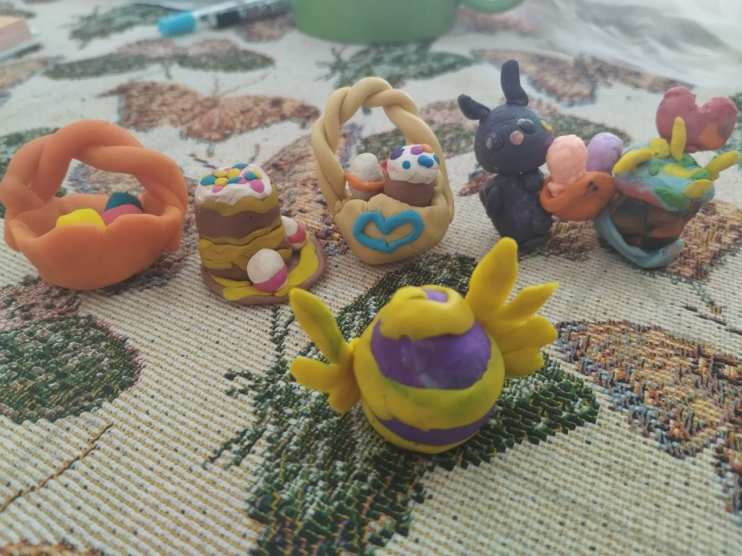⦁ Самостоятельная работа детей: Лепка пасхальных фигурок (яйца, куличи, цыплята, кролики) под руководством воспитателя.