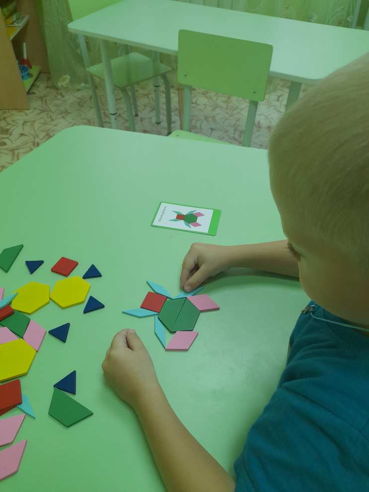 Дидактическая игра «Разложи фигуры по образцу» предназначена для детей и помогает: