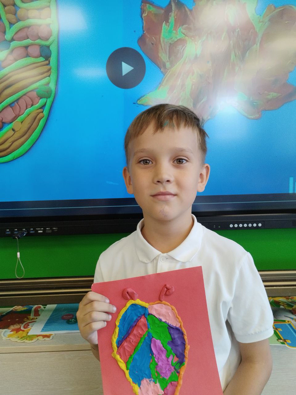 Композиция "Осенний Вальс Листвы" представляет собой живописный пластилиновый рельеф, запечатлевший один из самых поэтичных моментов осени – листопад. Работа выполнена на плотной основе (например, картоне), которая служит фоном для пластилиновой живописи.